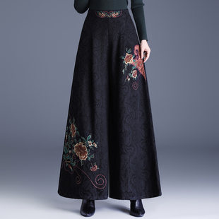 新中式 女2026秋季 中老年妈妈气质减龄休闲女裤 国风复古刺绣阔腿裤