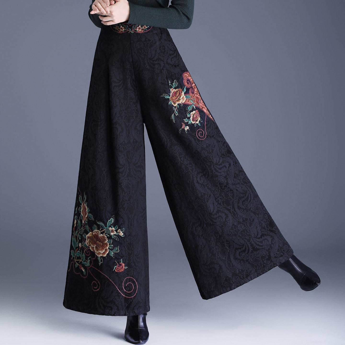 为您提供商品新中式 女2026秋季 中老年妈妈气质减龄休闲女裤 国风复古刺绣阔腿裤的详细介绍,