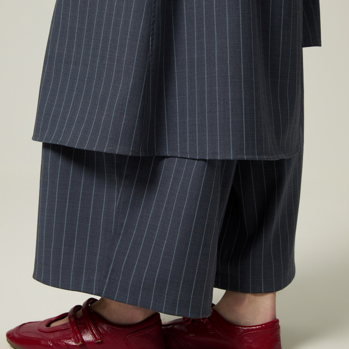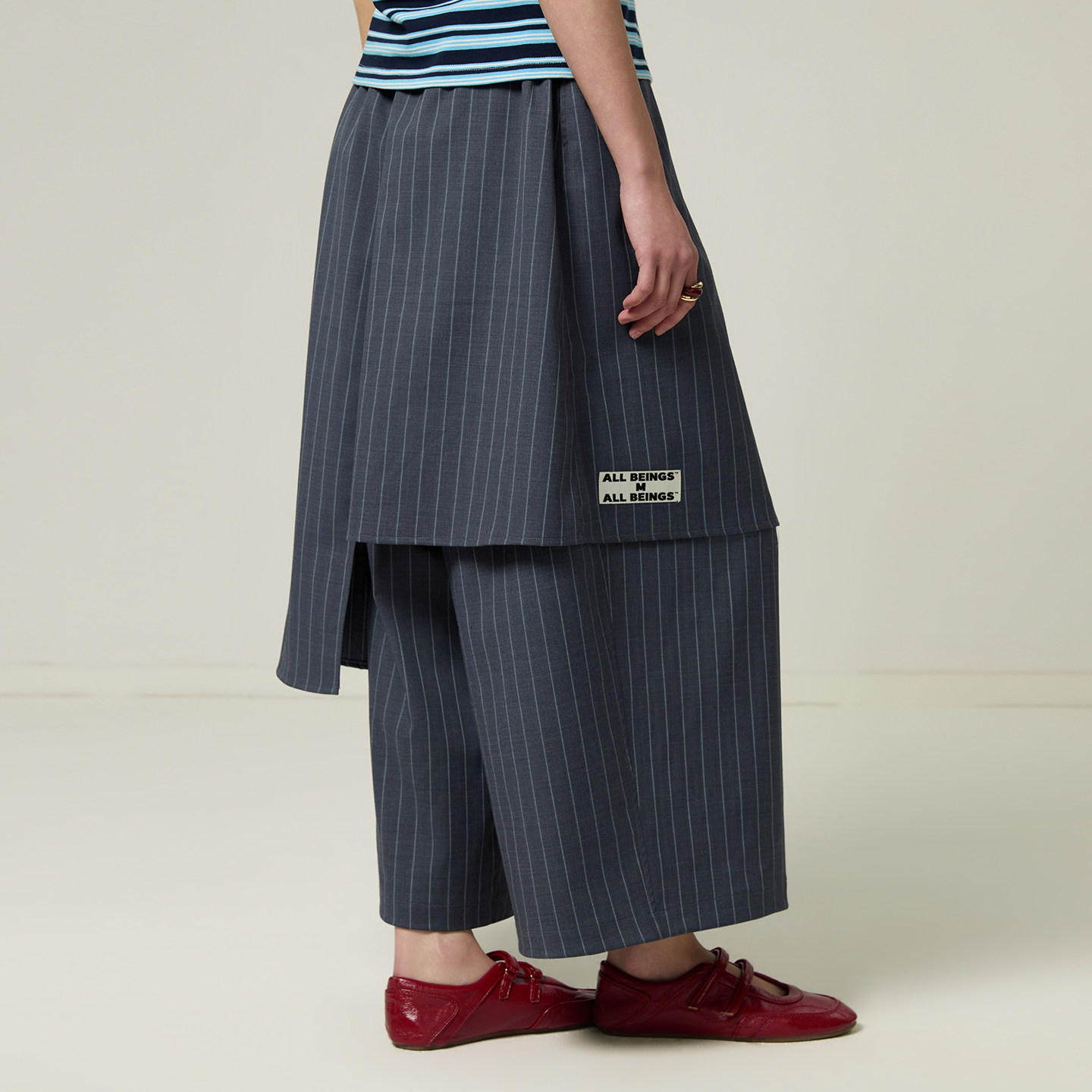 条纹精纺羊毛搭片不规则解构九分裤 女 BEINGS2026SS春夏新款 ALL由