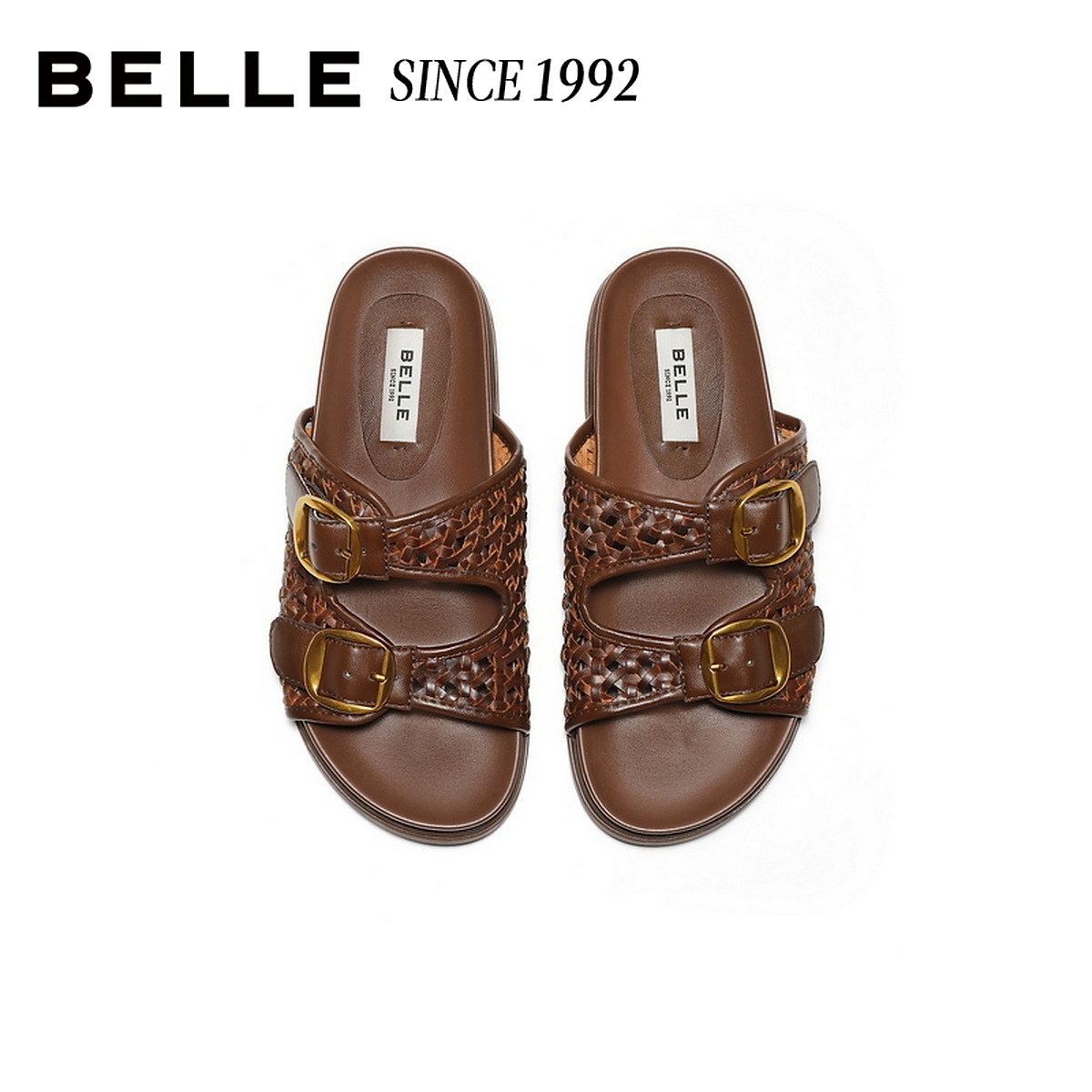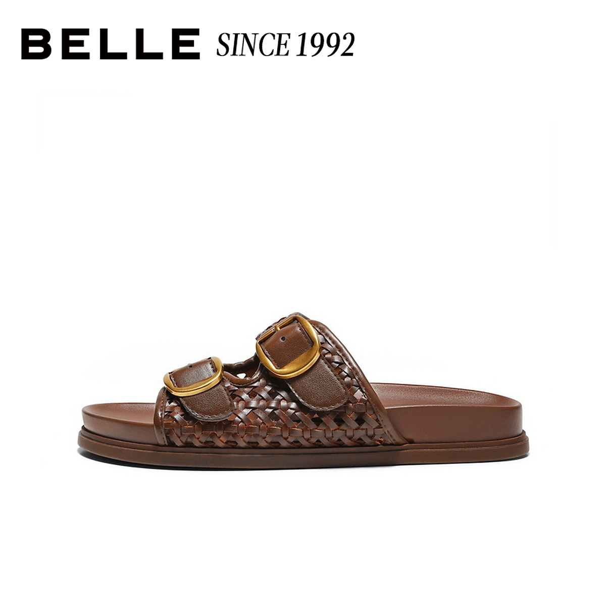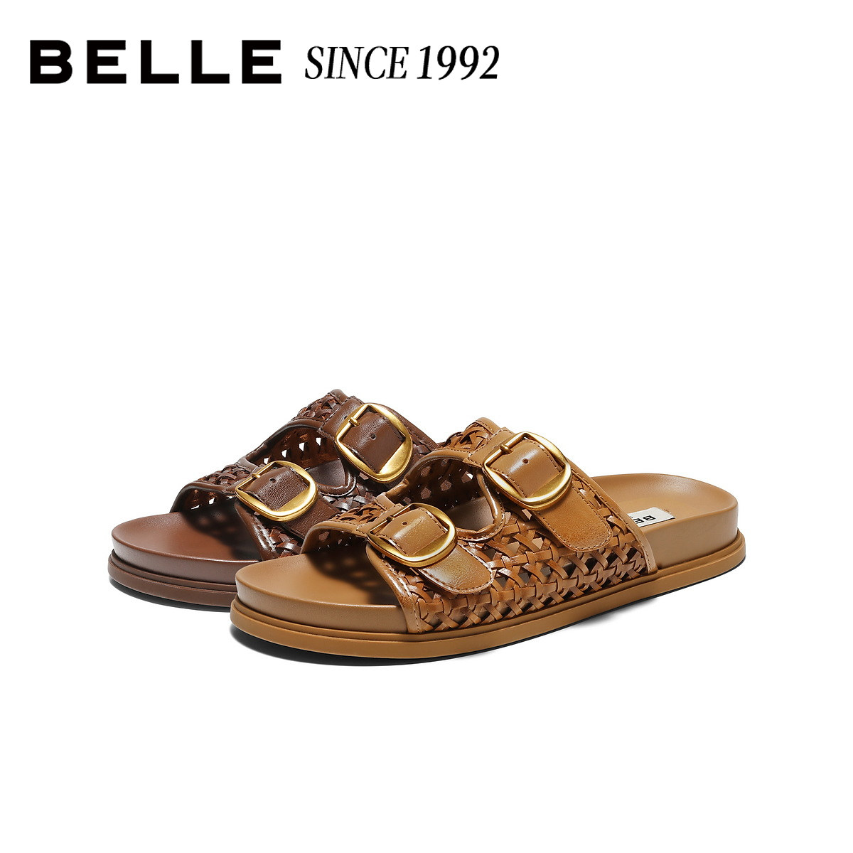 百丽编织镂空勃肯鞋 女26夏新皮带扣休闲拖鞋 H8018BT6预 92系列由