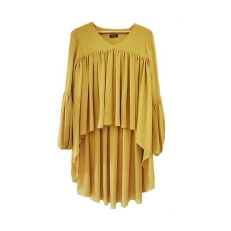 欧美宽松显瘦前短后长沙滩防晒灯笼袖 2021新款 夏季 女装 上衣 雪纺衫由