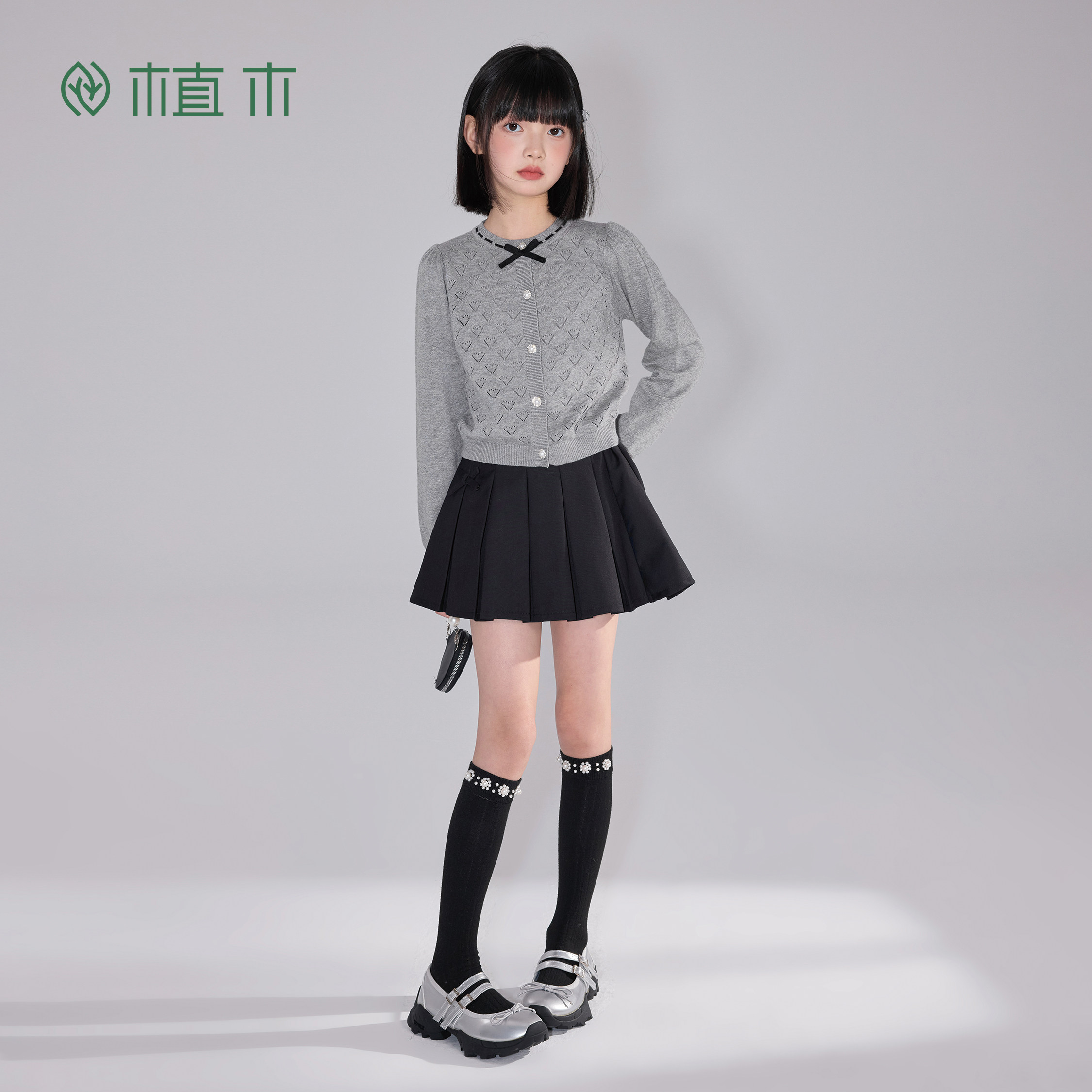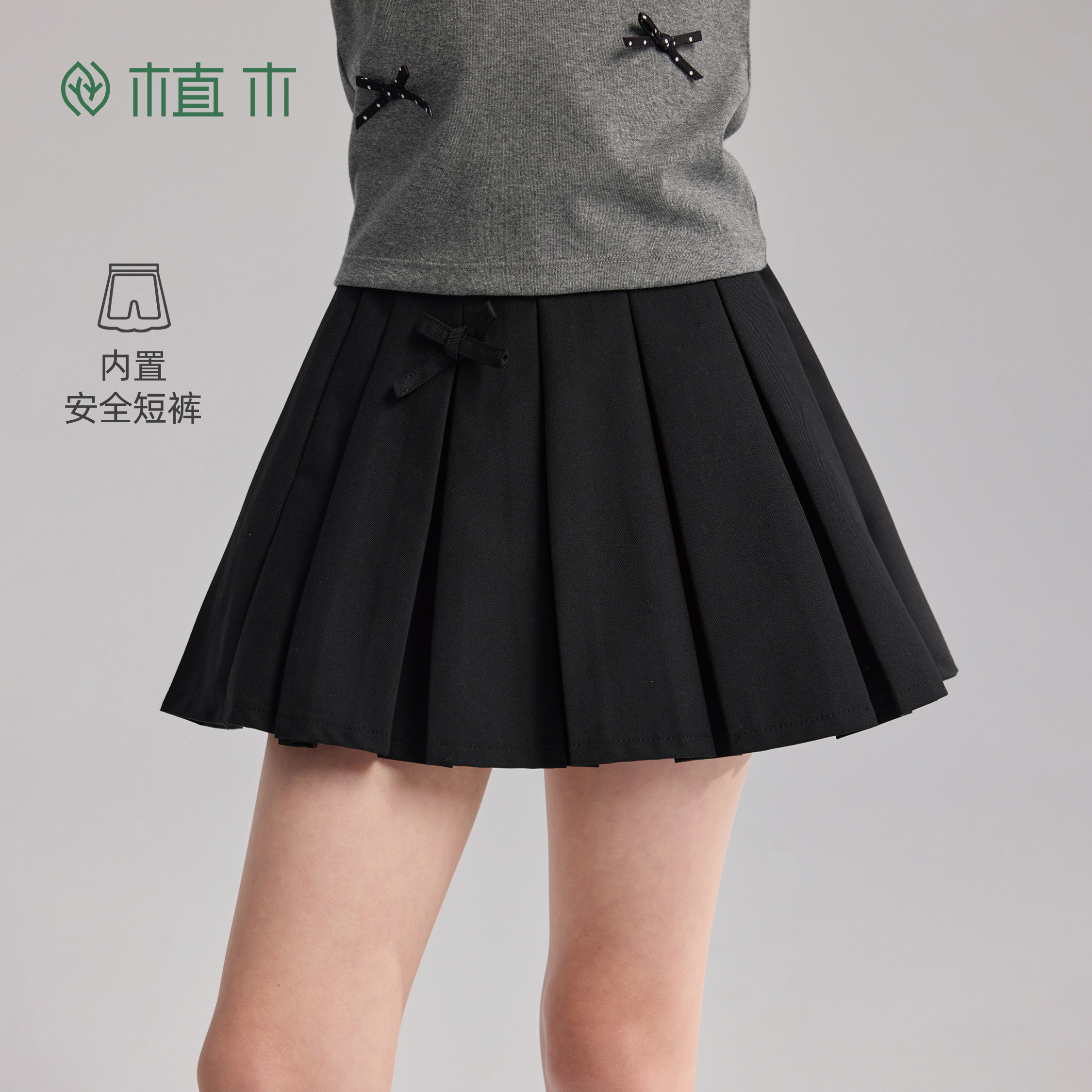 植木 女童半身裙 2026夏新款 儿童短裙A字裙中腰 miu系学院风由