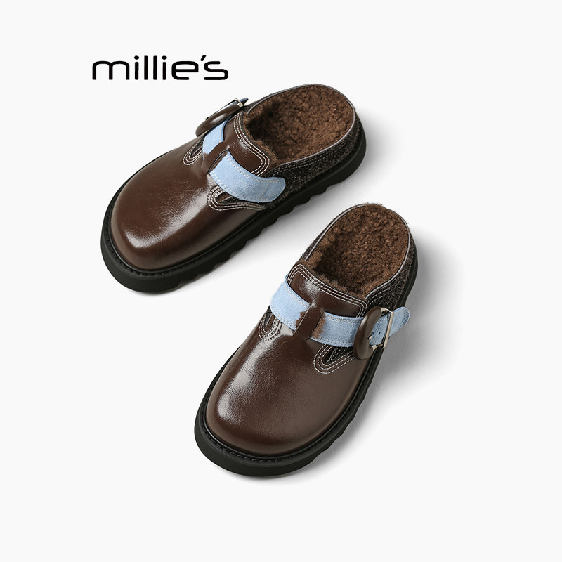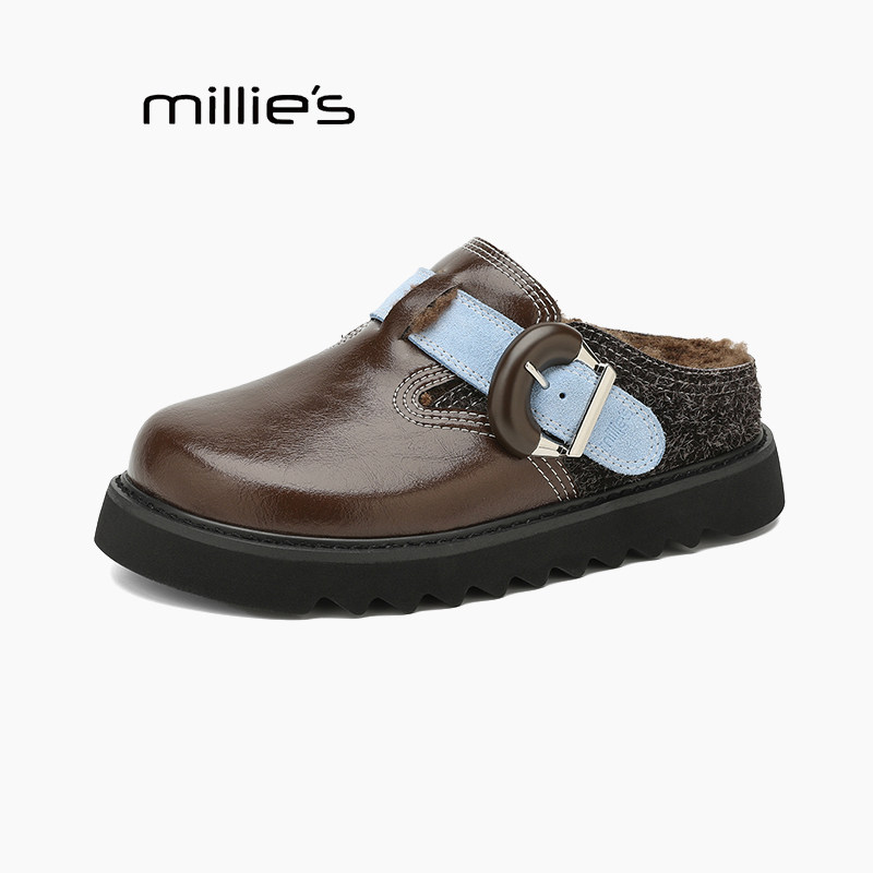 为您提供商品MILLIE 妙丽松糕厚底包头半拖鞋 外穿秋冬懒人一脚蹬勃肯棉拖鞋的详细介绍,