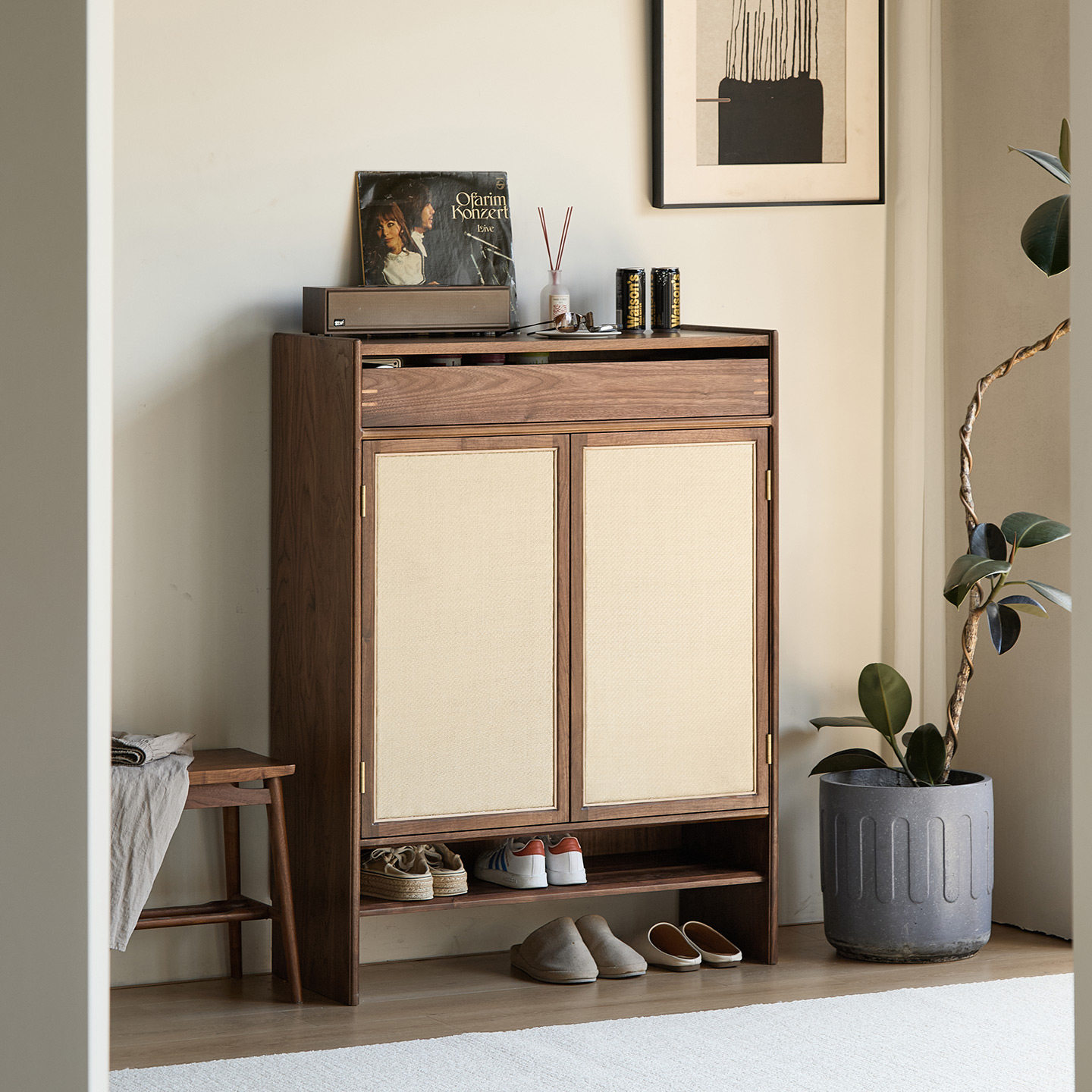 为您提供商品留意实木鞋 架 柜家用门口客厅复古收纳储物柜藤编入户玄关置物柜鞋的详细介绍,
