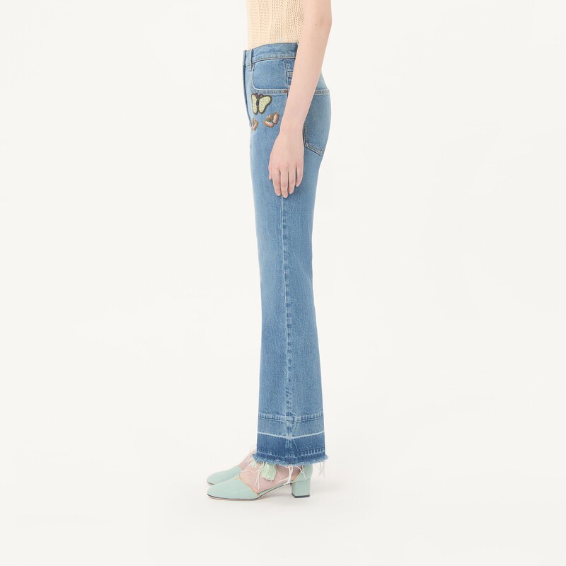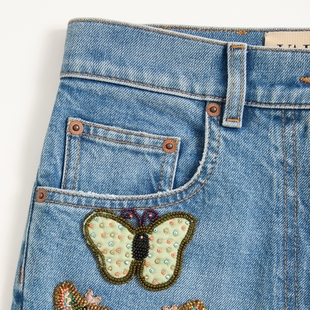 上市 12期免息 华伦天奴VALENTINO女士刺绣牛仔裤 新品