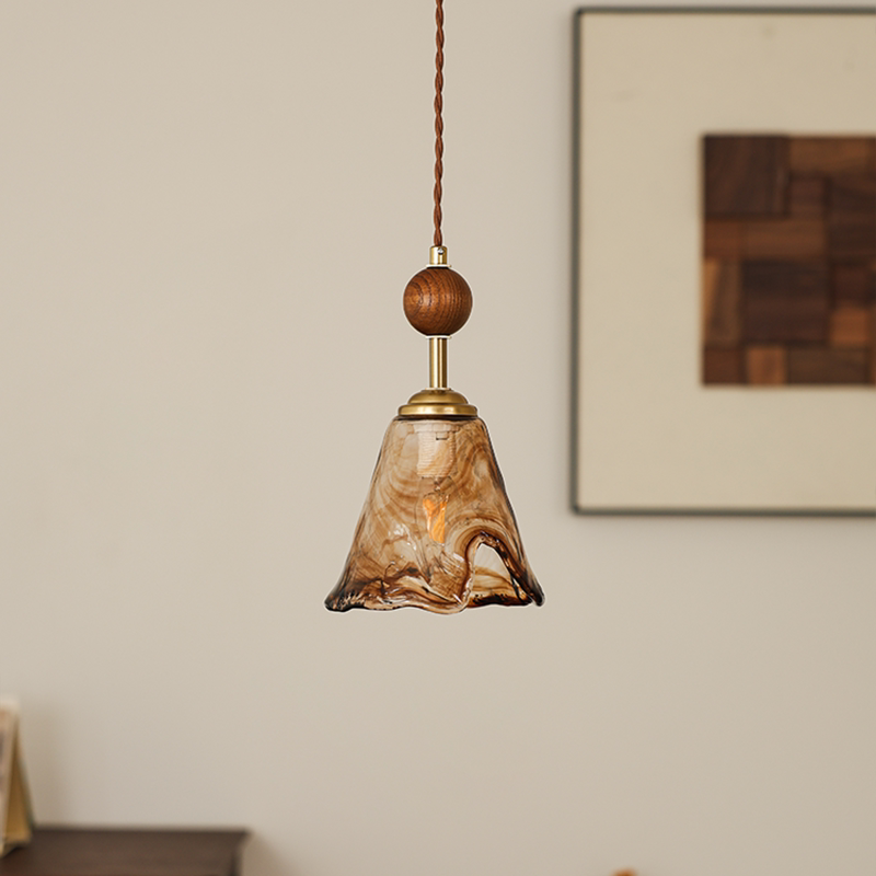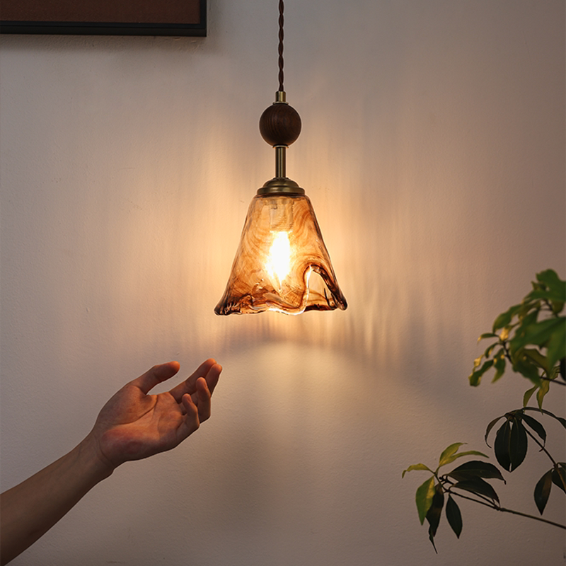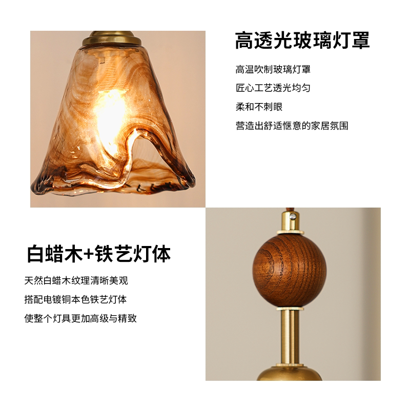 复古玻璃餐厅吊灯胡桃木色婚庆橱窗咖啡厅吧台玄关过道灯床头吊灯