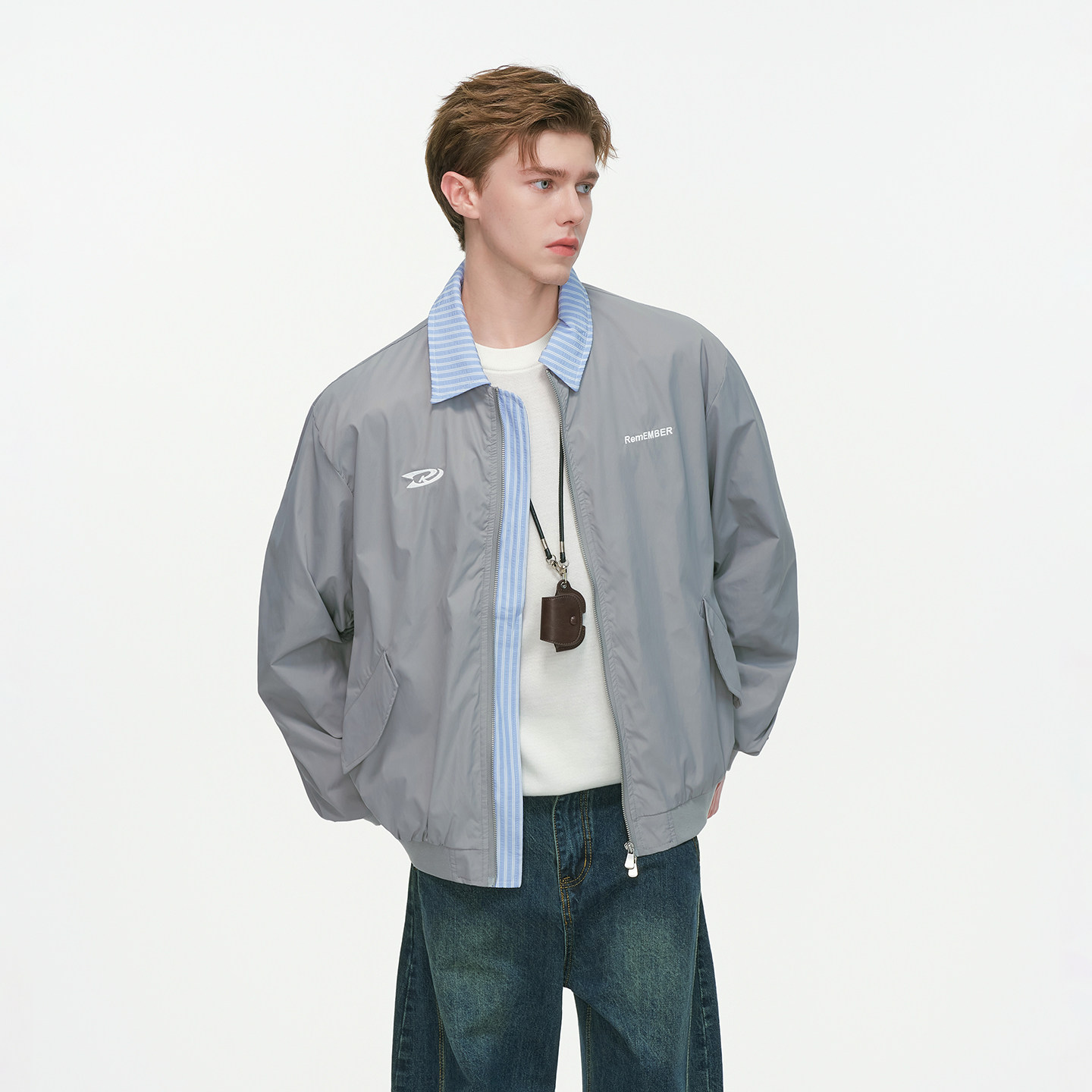 为您提供商品Dream 美式 刺绣假两件棒球服外套男春秋季 拼接条纹翻领夹克 made的详细介绍,