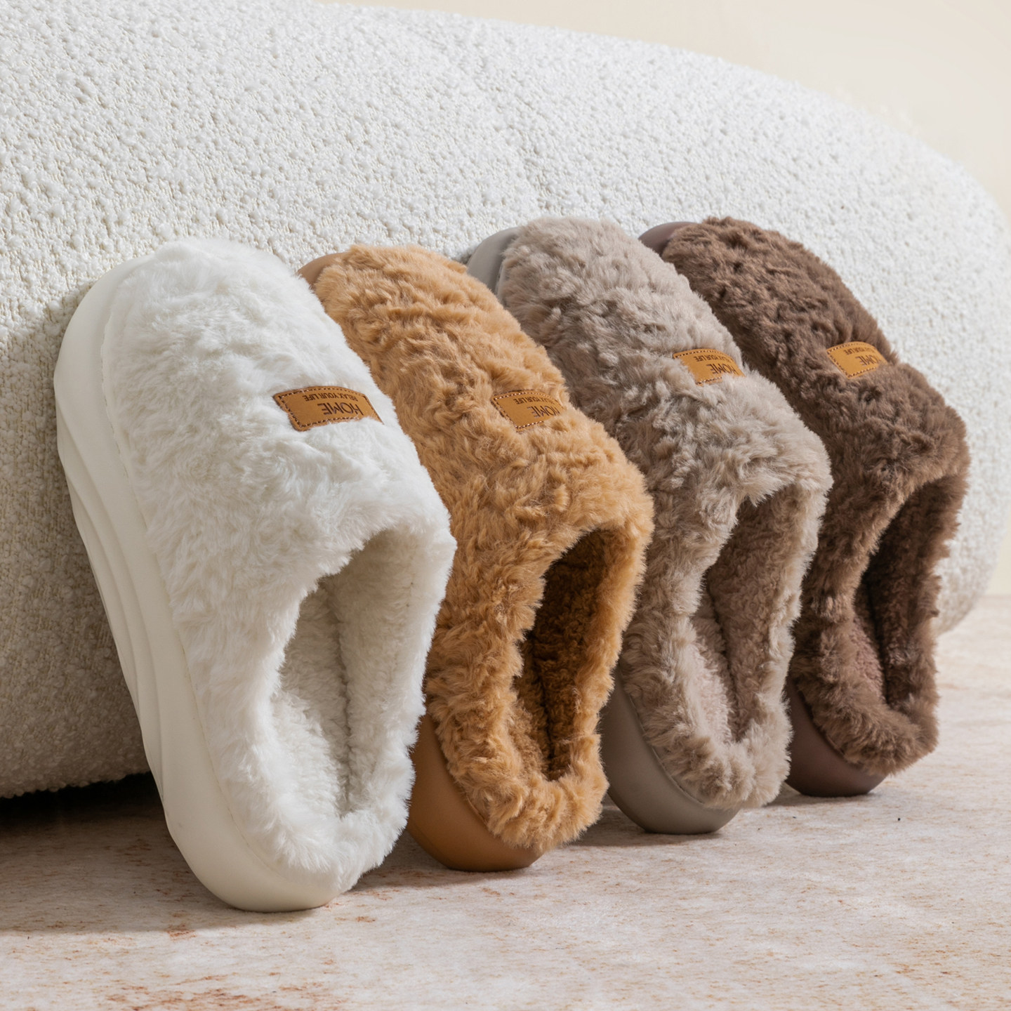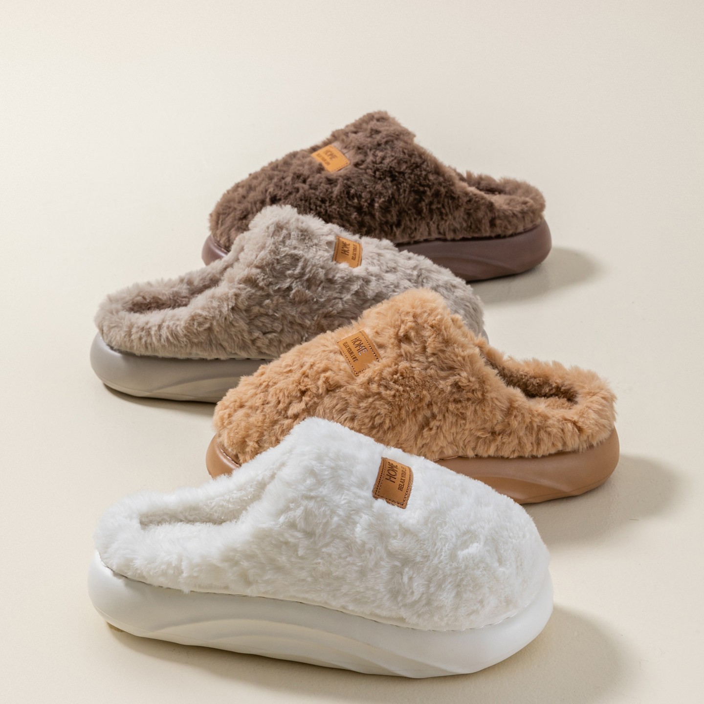 朵朵绒情侣毛绒厚底棉拖鞋 冬季 保暖室内家居毛毛拖鞋 男 女2025新款