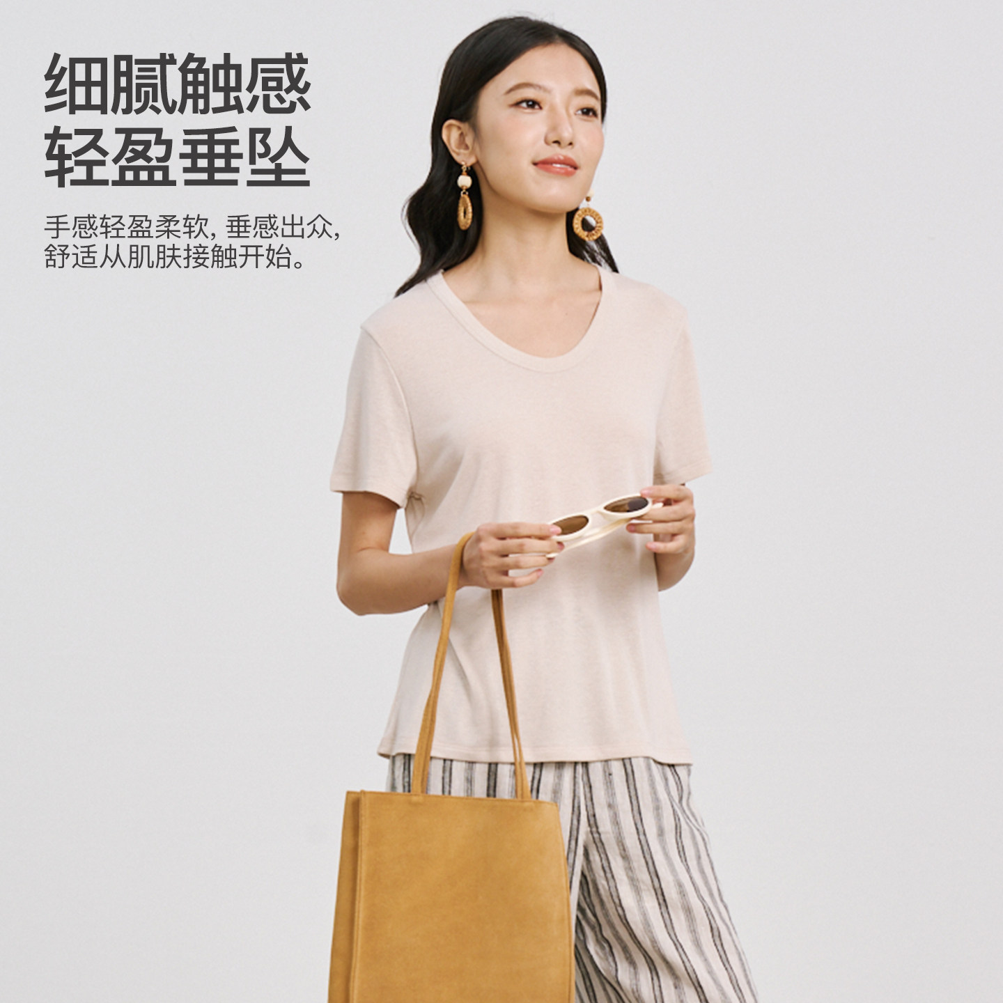莱赛尔天丝亚麻正肩短袖 春夏简约宽松独特内搭t恤上衣 女2026新款