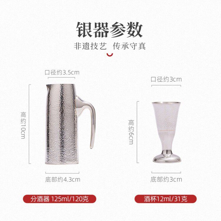 为您提供商品家用白酒一口杯清酒银杯子足银小器皿 纯银999手工银分酒器套装的详细介绍,
