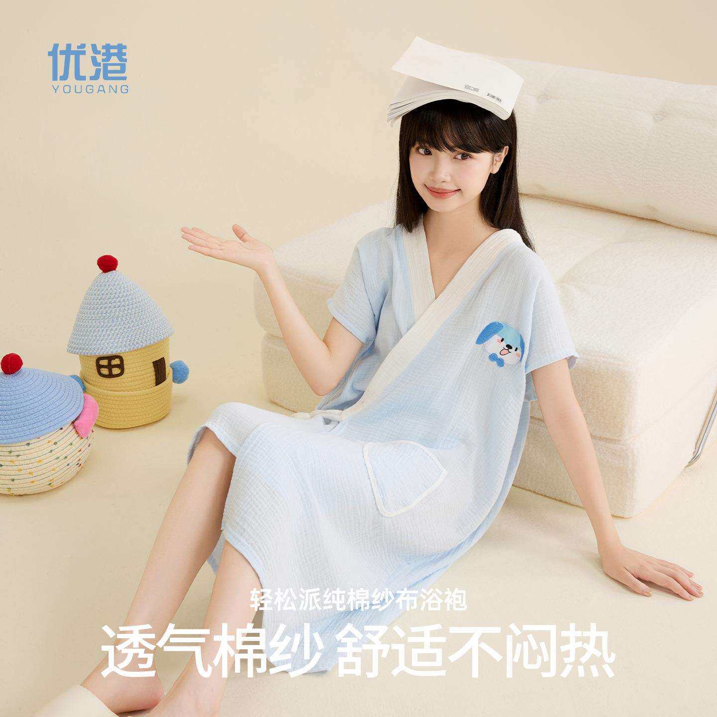 夏季 浴巾浴裙宿舍家用 浴袍纯棉纱布轻薄透气洗澡吸水速干可穿式