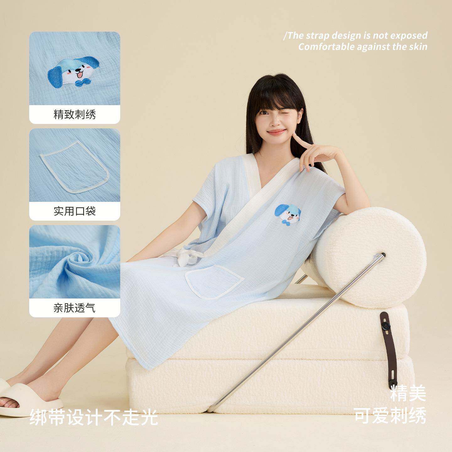 为您提供商品夏季 浴巾浴裙宿舍家用 浴袍纯棉纱布轻薄透气洗澡吸水速干可穿式的详细介绍,