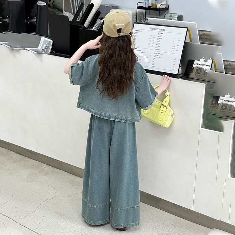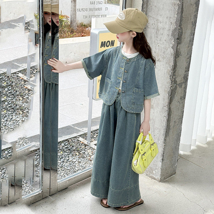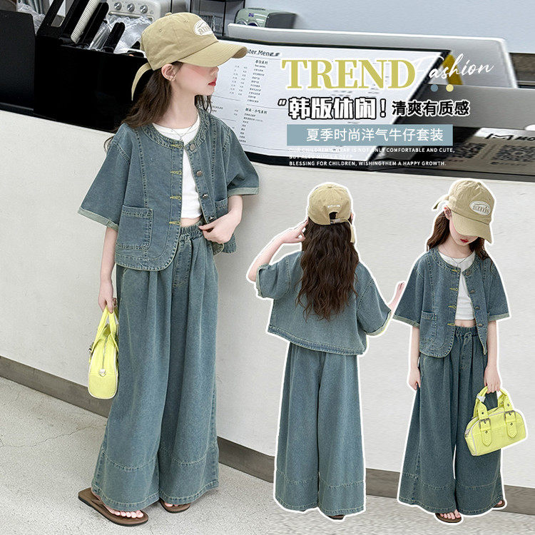 新款 套装 短袖 休闲潮流牛仔两件套 洋气女大童夏装 薄款 时尚 女童夏季