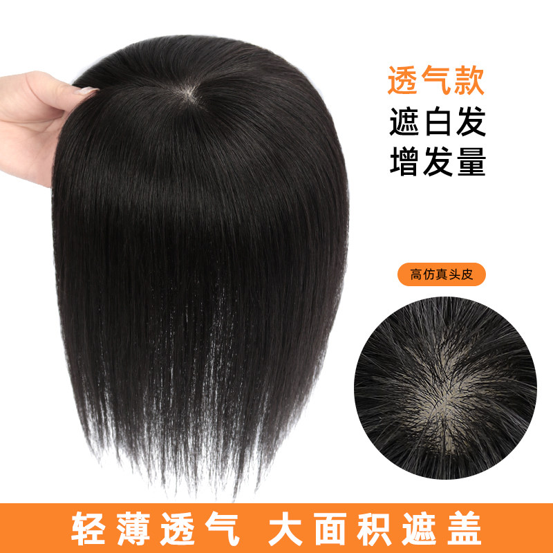 头顶补发片女隐形无痕遮白发直发假发片全真M发刘海补发块蓬松自由