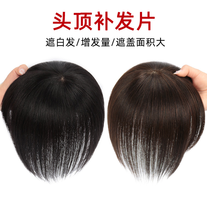 头顶补发片女隐形无痕遮白发直发假发片全真M发刘海补发块蓬松自