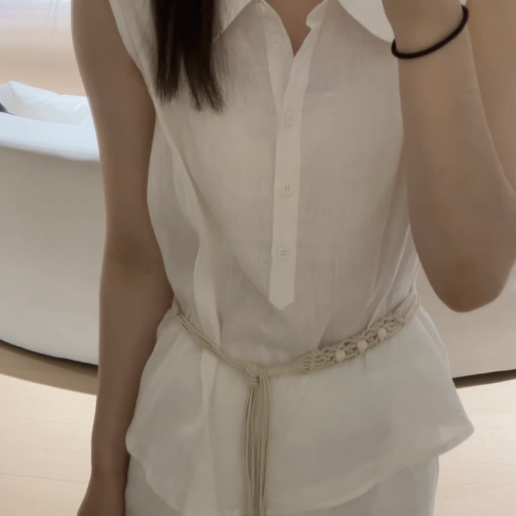 一起肉polo领小衫 配腰绳 单独上衣可做套装 EN65090 小衫由