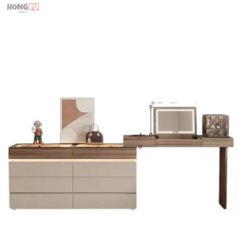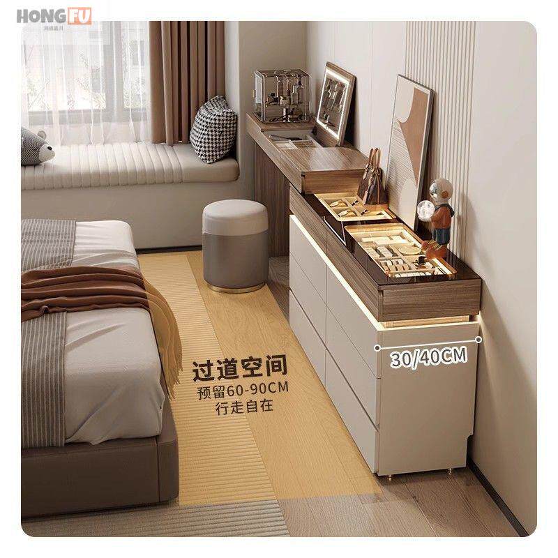 斗柜梳妆台一体卧室床尾柜翻盖化妆桌卧室大容量靠墙储 鸿福超薄款由