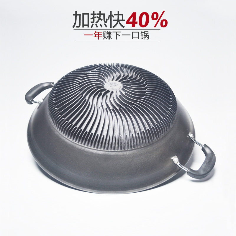 富贵宝节能炒锅家用无涂层翅片双耳加厚铸铁燃气灶适用炒菜大铁锅由
