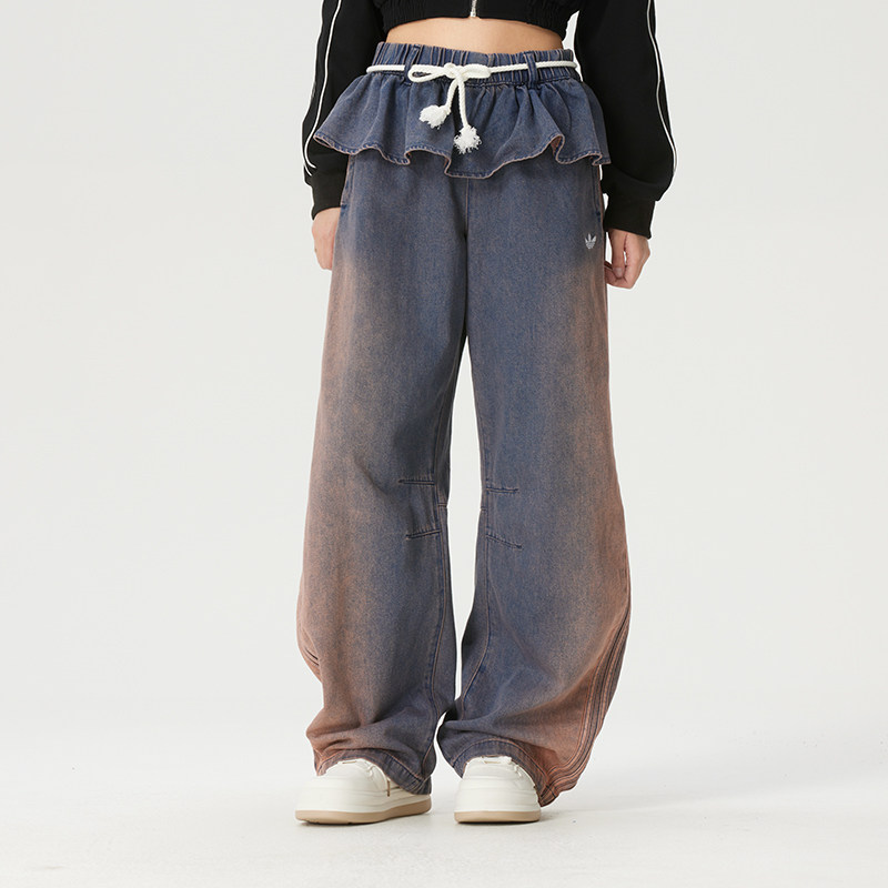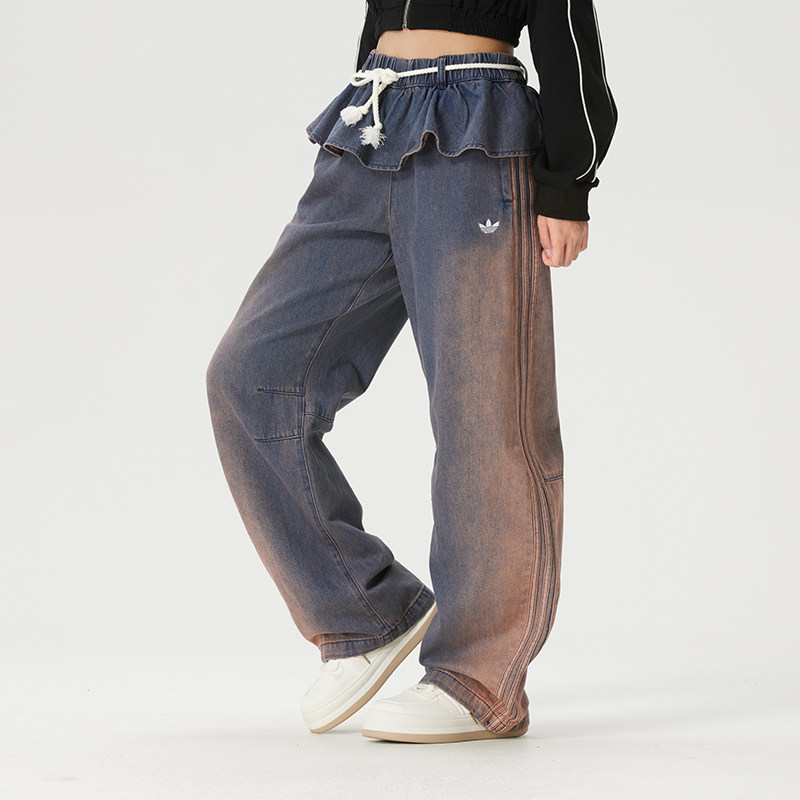 女裤 自营 Adidas阿迪达斯牛仔长裤 简约运动休闲裤 三叶草时尚由