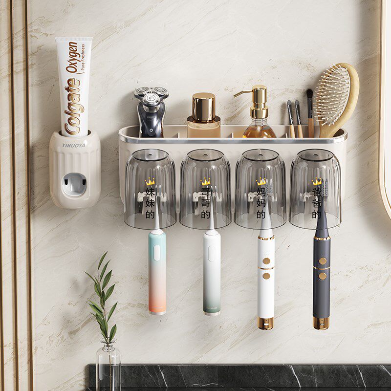 电动牙刷牙杯置物架子壁挂式 免打孔家庭轻奢牙具挂架 漱口杯挂墙式