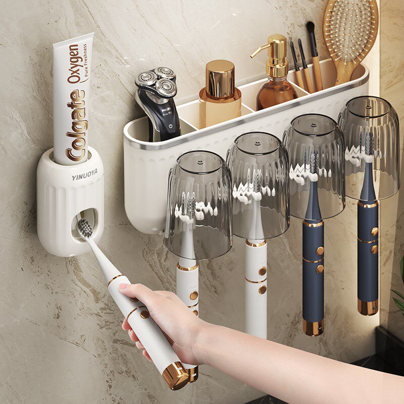 免打孔卫生间牙具座牙膏收纳浴室 牙刷牙杯壁挂置物架电动牙刷套装