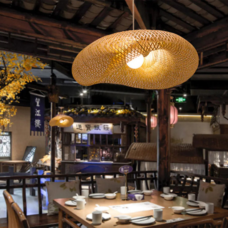 复古民宿灯具店铺商用藤编灯创意竹编灯罩 竹编吊灯餐厅茶室灯中式