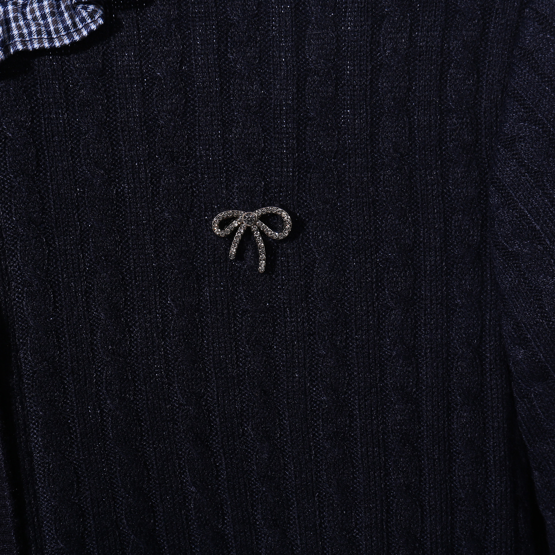 戈美 女2026年春季 新款 韩系圆领毛线 NA撞色格纹木耳花边针织开衫由