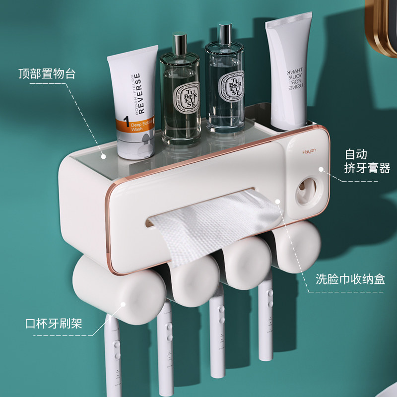 牙缸套 轻奢高级感e牙刷牙膏置物架刷牙漱口杯卫生间免打孔壁挂式