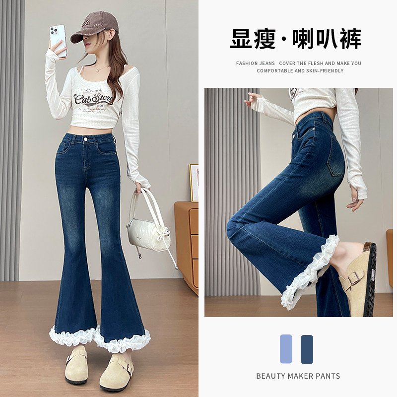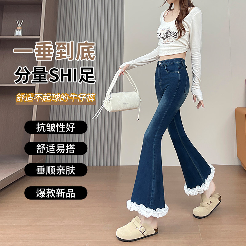 为您提供商品155显瘦显高9分喇叭裤 女矮小个子148 白色木耳花边八分微喇牛仔裤的详细介绍,
