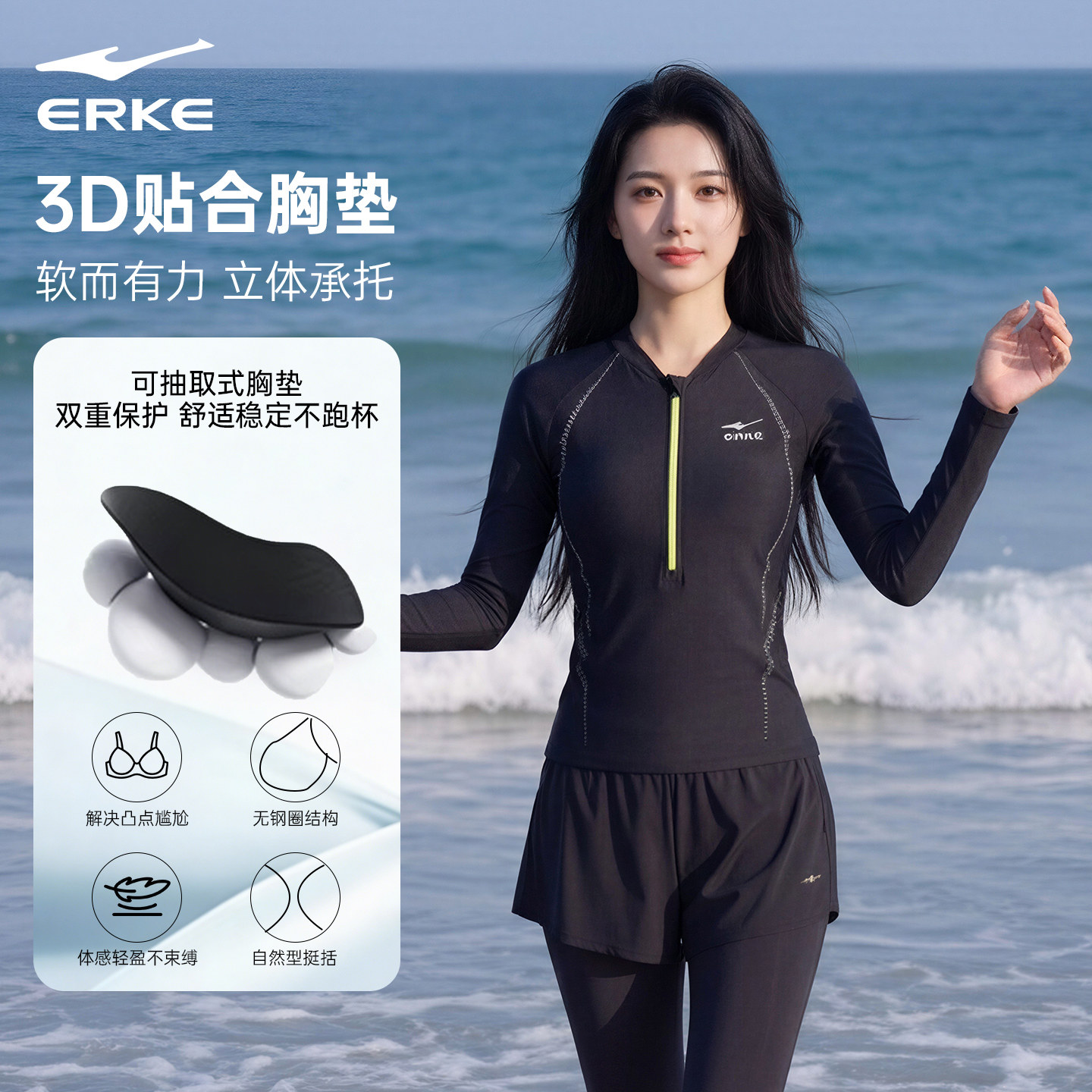鸿星尔克分体泳衣女士新款 微胖显瘦连体裙防晒海边度假成人泳装