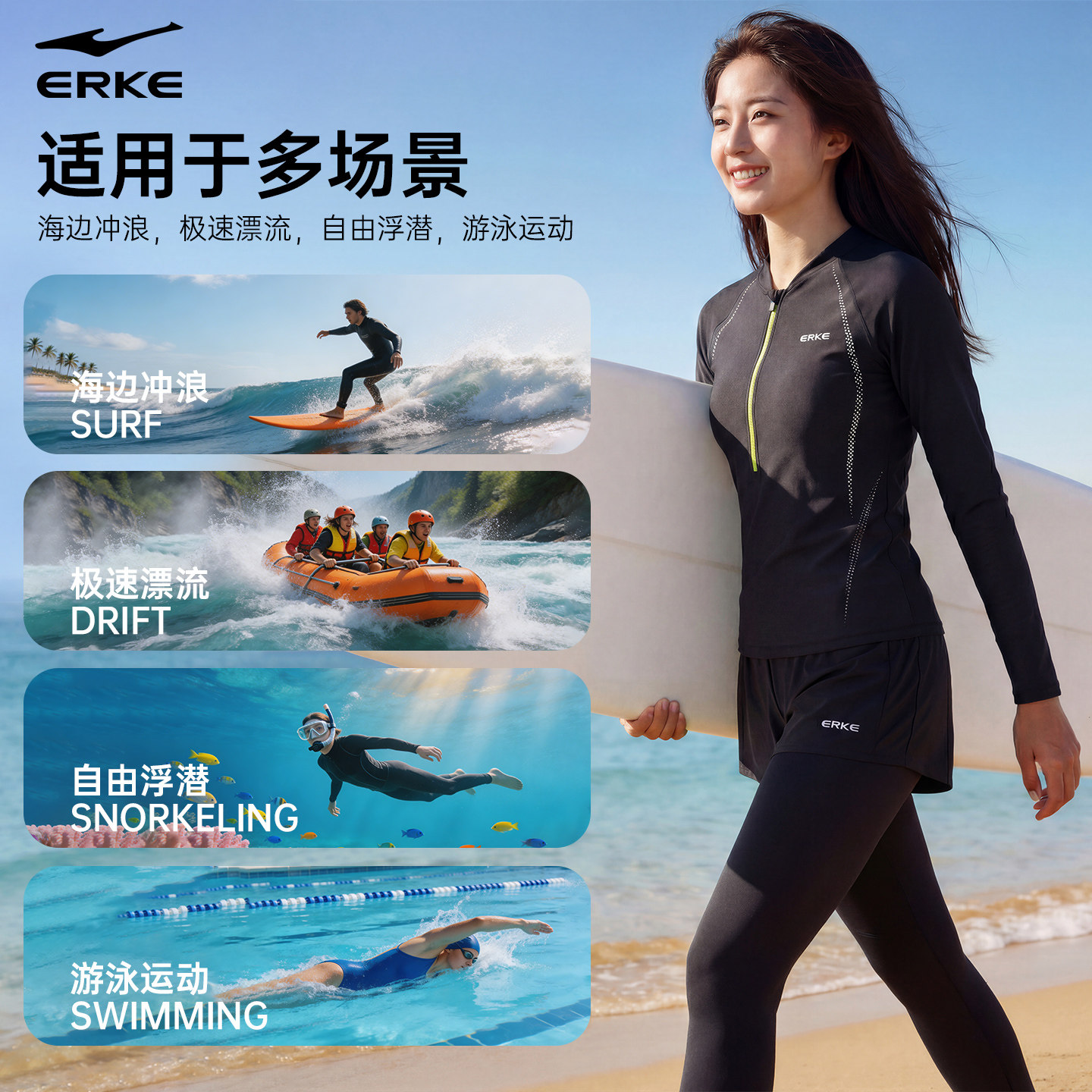 为您提供商品鸿星尔克女士游泳衣分体长袖 防晒保暖冲浪潜水服成人水母服 长裤的详细介绍,