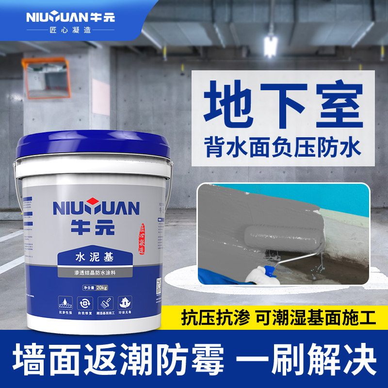 背水面地下室负压防水涂料水泥基渗透结晶内墙屋顶渗水防补漏 牛元