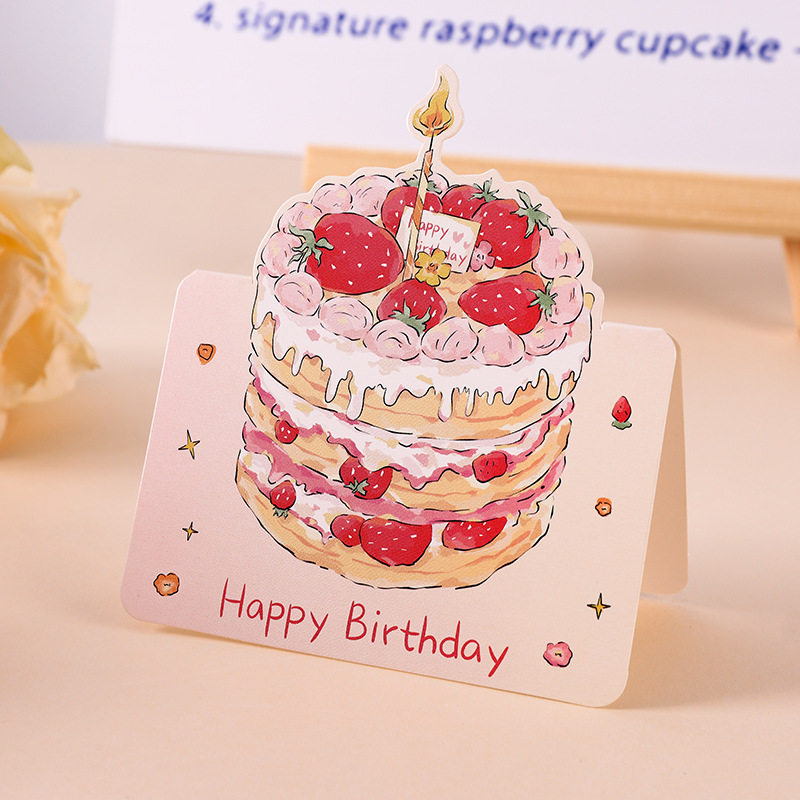 生日蛋糕贺卡小清新祝福卡片高级感鲜花花束留言卡片对折手写卡片