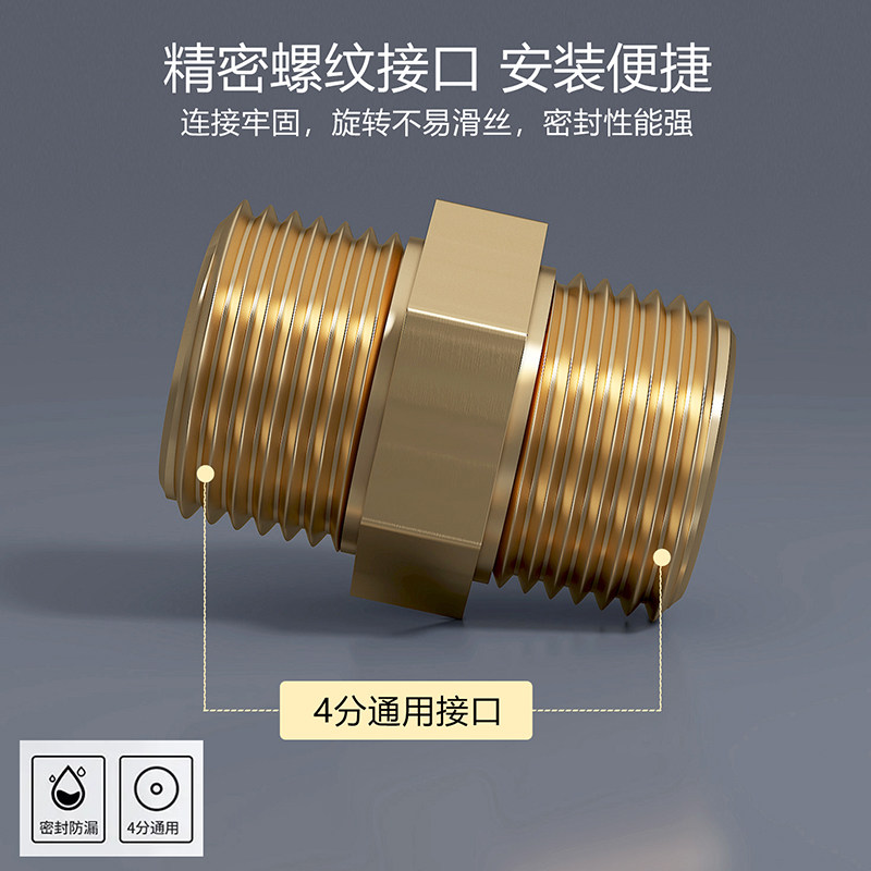 莱尔诗丹4分加厚全铜对丝外丝直接进水管接头配件通用软管对接器由