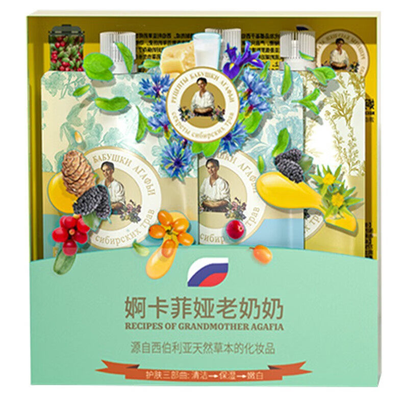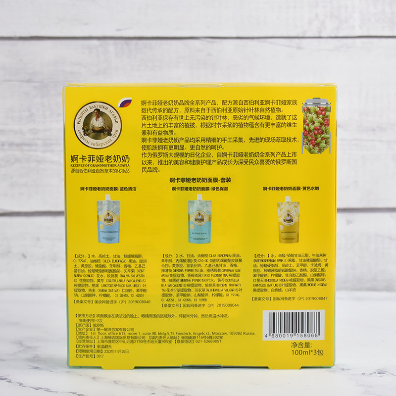 婀卡菲娅老奶奶俄罗斯国家馆进口面膜涂抹套装 嫩肤护肤品送礼 保湿