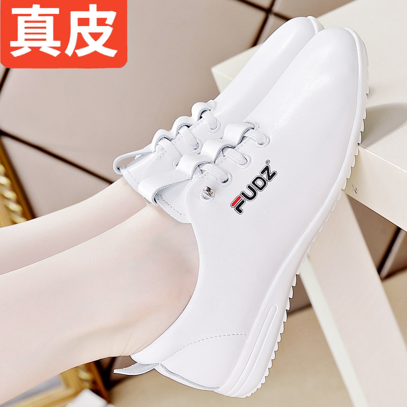 百搭运动休闲旅游鞋 断码 女 平底软底时尚 新款 真皮小白鞋 女2026春季