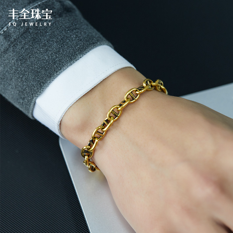 为您提供商品电黑金猪鼻子黄金手链男款 手环男士 复古纯金首饰5D硬金情侣款 女款的详细介绍,