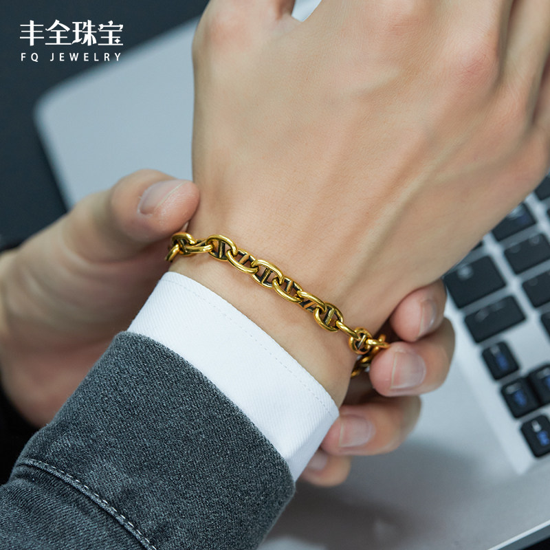 电黑金猪鼻子黄金手链男款 手环男士 复古纯金首饰5D硬金情侣款 女款由