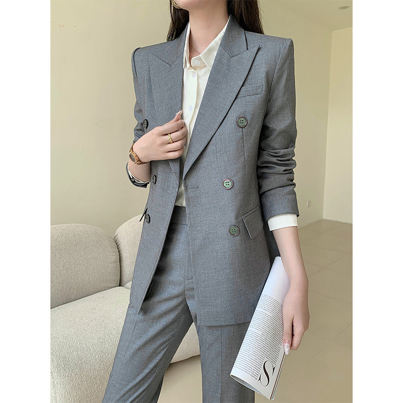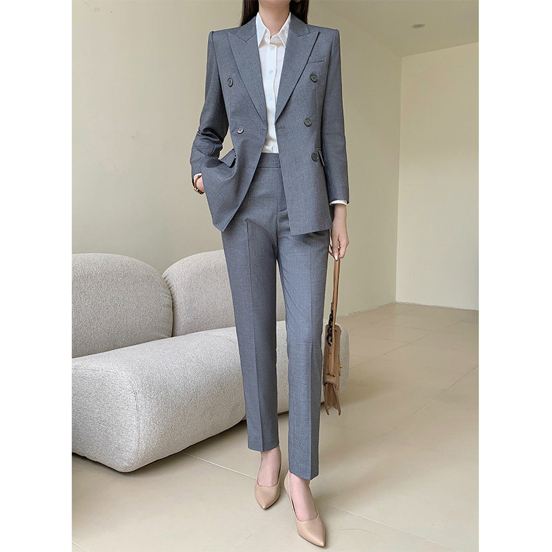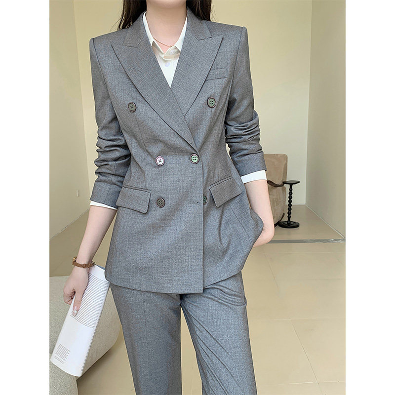 公务员面试西装 女春秋款 气质两件套裤 灰色西服洋气时髦工作服 套装由