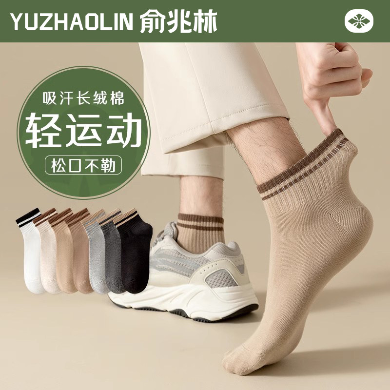 纯色百搭吸汗防臭透气低帮运动袜船袜男款 短袜春夏款 5双袜子男士