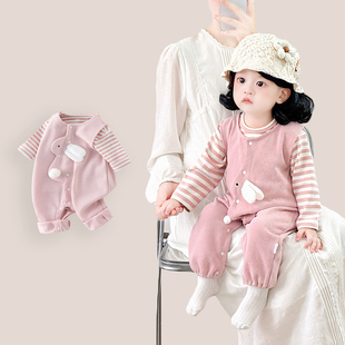 嫚熙婴儿连体衣春夏出游穿搭宝宝保暖夹棉连身衣开春外出服爬服