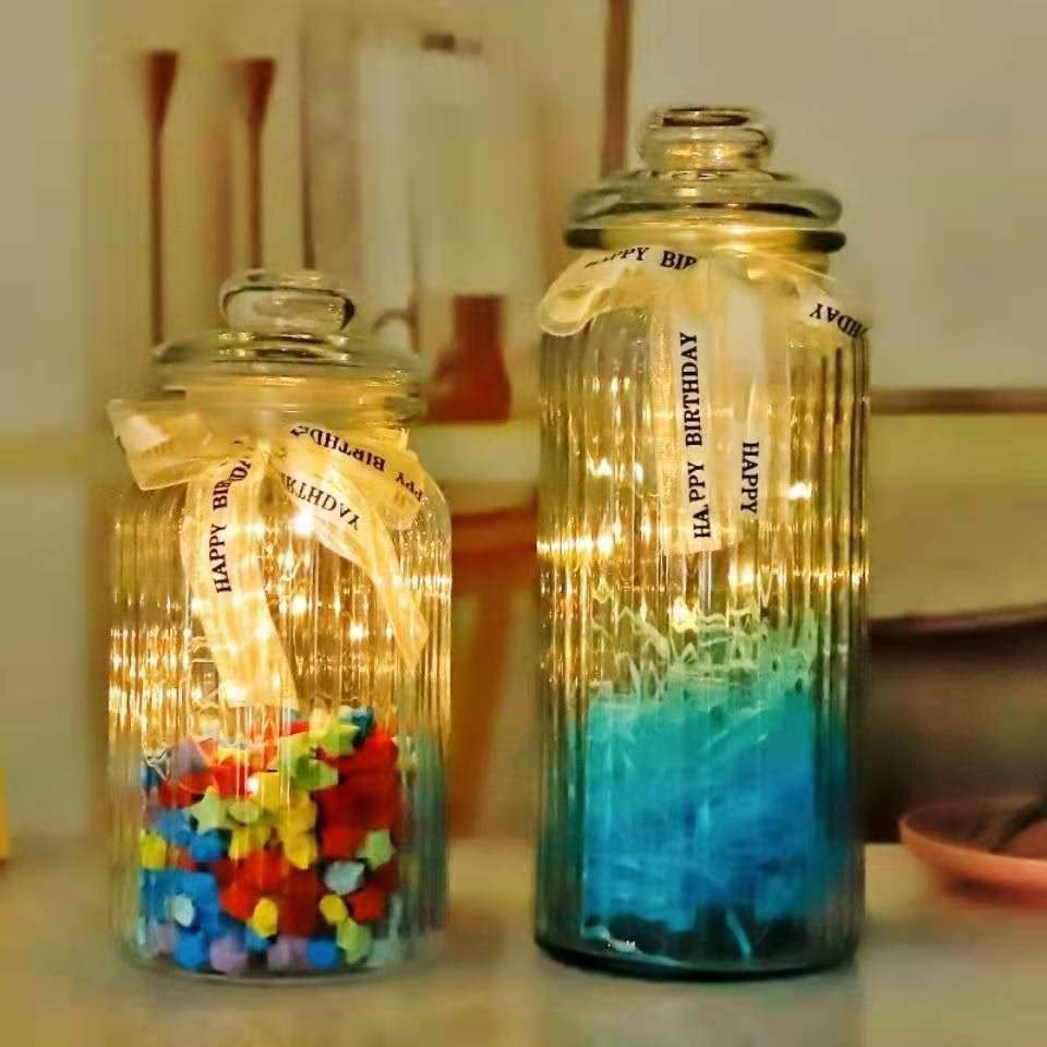 夜光星星折纸条玻璃瓶幸运星许愿瓶空瓶渐变五角星条材料520创意男朋友生日礼物儿童手工抖音网红折叠星星纸