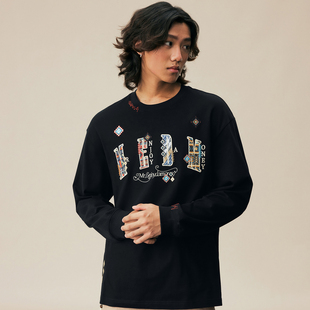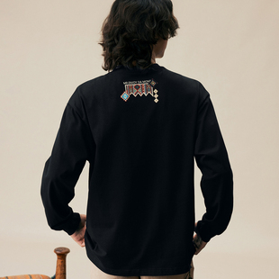 T恤纯棉圆领情侣打底衫 上衣 民族风小香贴布休闲长袖 MEDM2025新品