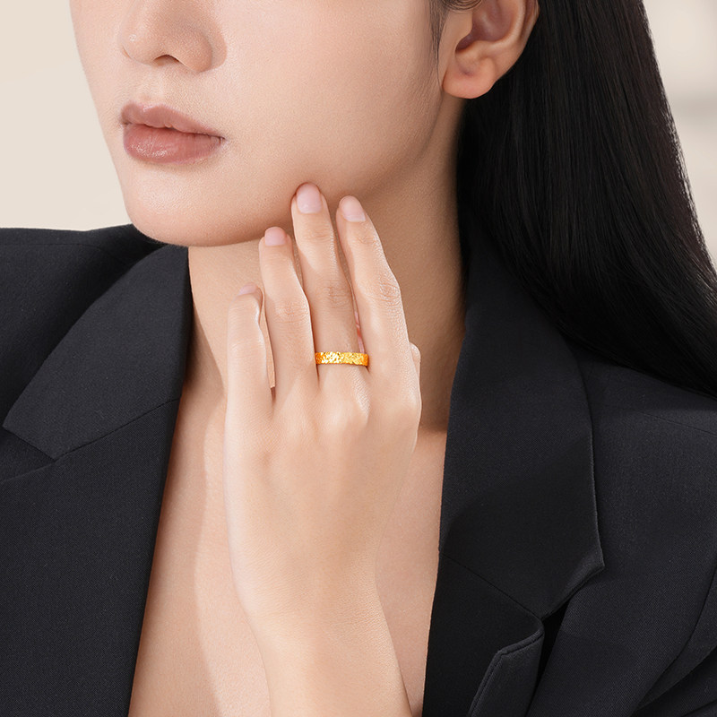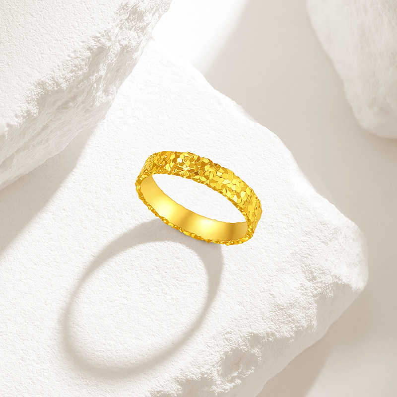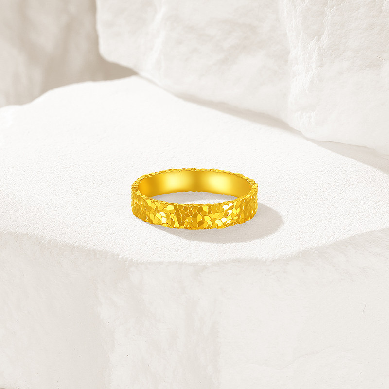 潮宏基御范爆闪碎碎冰足金戒指黄金素圈碎碎金计价生日礼物