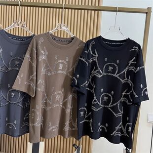 300斤胖mm春夏重工烫钻满身小熊设计感减龄宽松短袖 T恤女 超大码