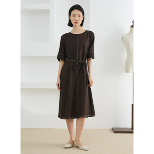 双面穿香云纱提花真丝连衣裙国风100%桑蚕丝圆领明线长裙 一丝牵由