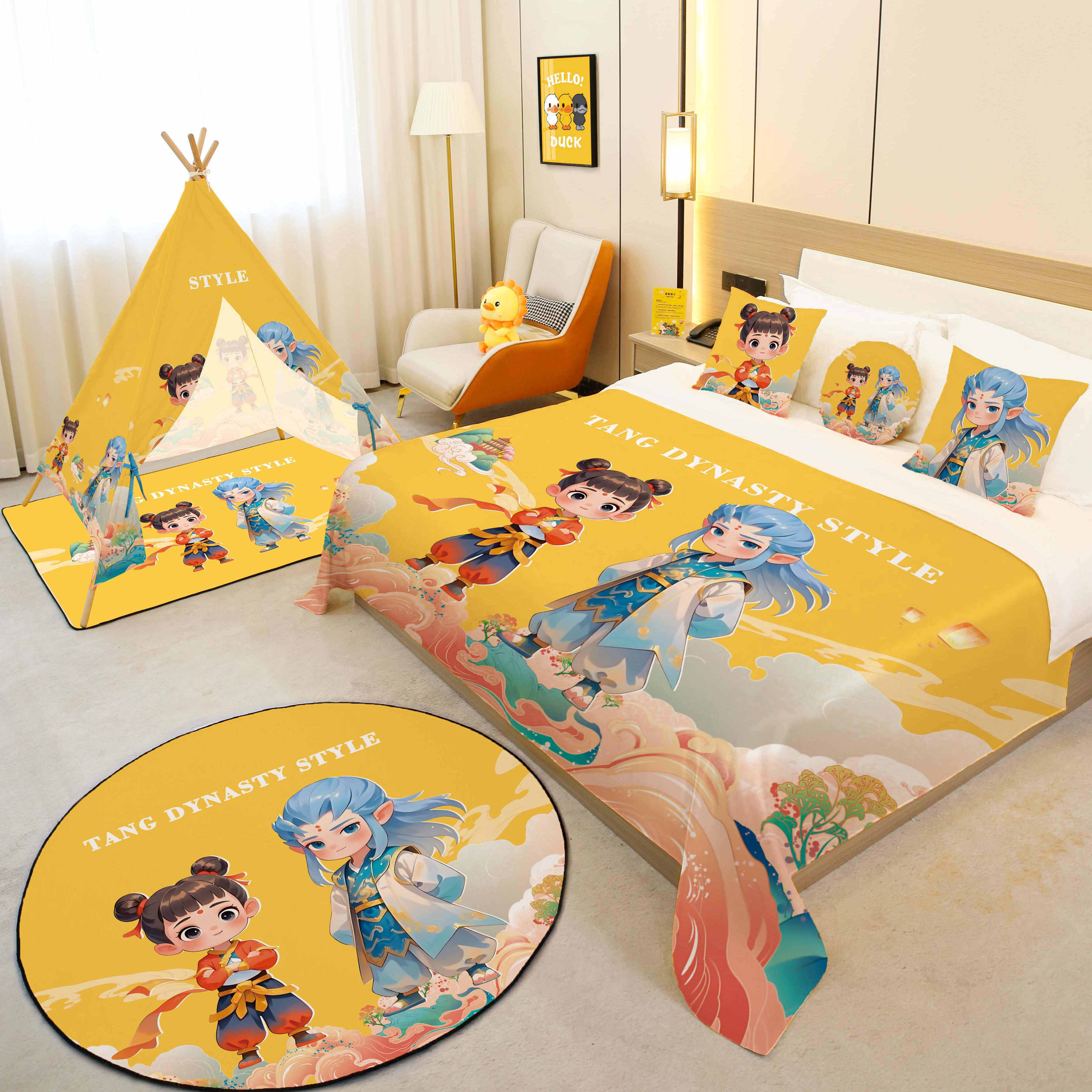 饰床尾巾床盖帐篷抱枕地垫 哪吒敖丙主题系列酒店民宿亲子房布置装