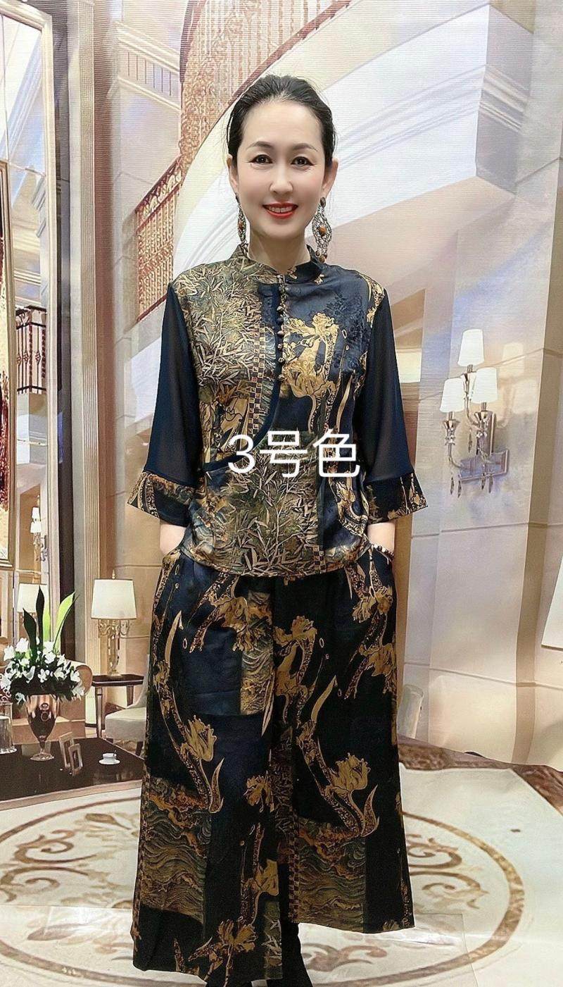 中国风香云纱印花旗袍衫 中老年妈妈套装 夏季 新款 显瘦两件套潮 套裤由