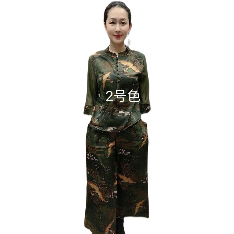 中国风香云纱印花旗袍衫 中老年妈妈套装 夏季 新款 显瘦两件套潮 套裤