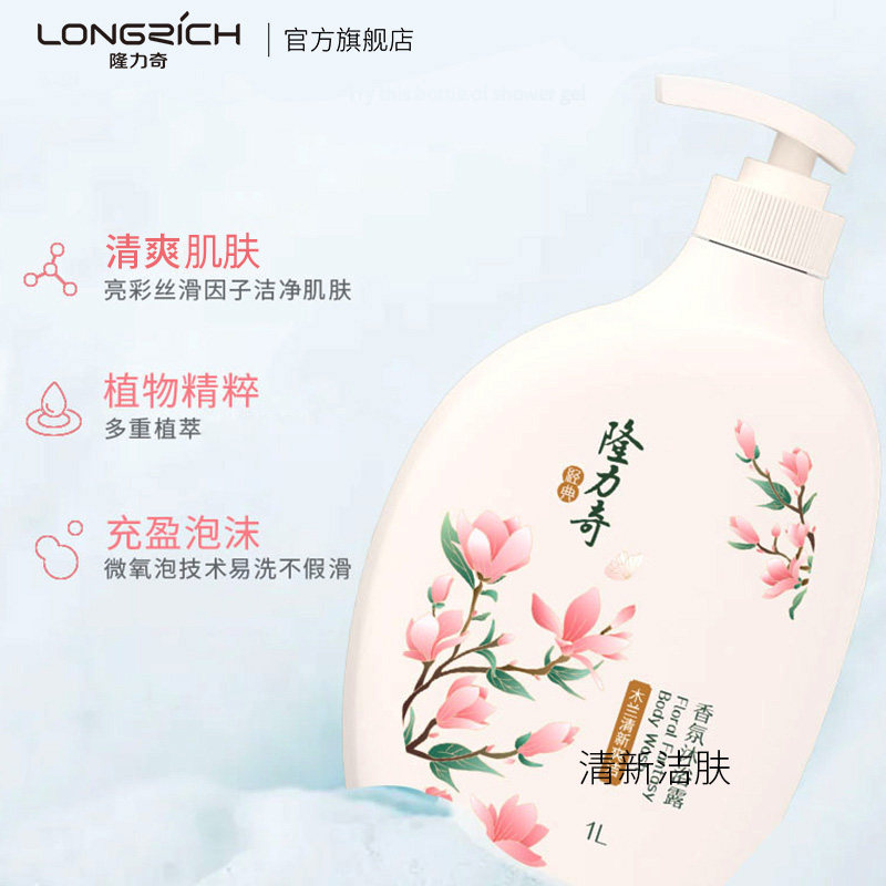 隆力奇木兰清新爽洁香氛沐浴露木兰花香型大瓶家庭装 沐浴乳正品由